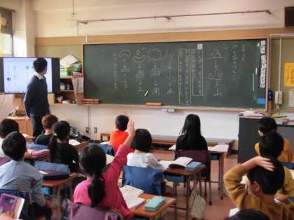 国語の「漢字の成り立ち」の学習です。象形文字について、どのような漢字が出来上がったのか流れを見ながら学習しています。