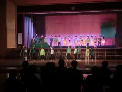 1年生のリハーサルです。いろいろな生き物になり切った1年生。手足を大きく動かした演技から一生懸命さが伝わってきます。今日のリハーサルが、明日の本番に向けてのいい連取になってほしいと思っています。1年生の一生懸命な演技にご期待ください。