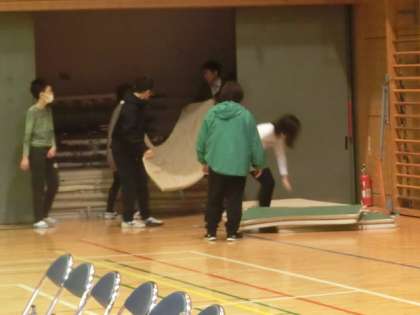 6時間目は、6年生と教職員で、学芸会の前日準備をしています。