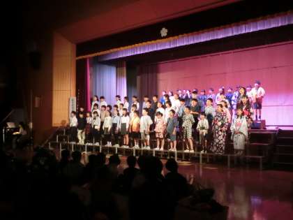 常にひな壇の上に座っている3年生。最初から最後までお客さんの視線の前にあります。緊張しながらもとてもすてきな演技を見せてくれました。みんなでそろった動きもすてきでした。