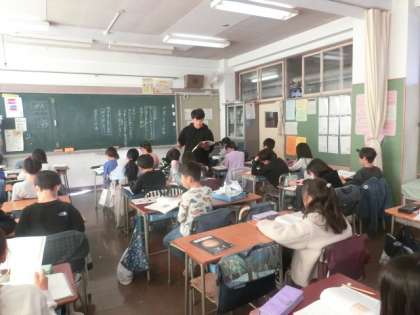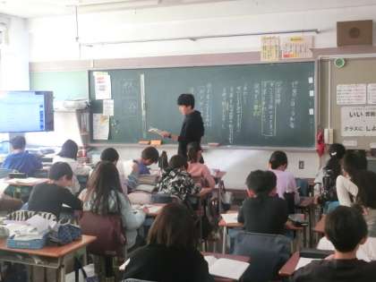 説明文の学習です。先生の範読を聞きながら、段落分けをしています。子どもたちは静かに範読を聞きながら、段落を分けています。