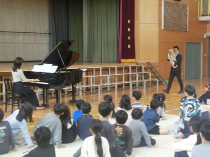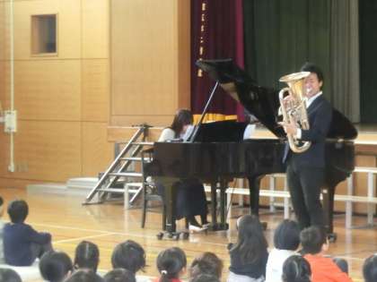 さすが、プロの音楽家です。子どもたちは演奏に釘付けになっています。