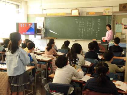 国語の説明文の学習では、はじめ、中、おわりの段落の構成について意見を出し合っています。これまでの学習を生かし、接続語に着目する子、話題が変わっていることを理由に挙げる子、しっかり自分の考えをもち、発表することができています。また、仲間の意見を真剣に聞く姿から、学ぶ姿勢の高まりを感じます。