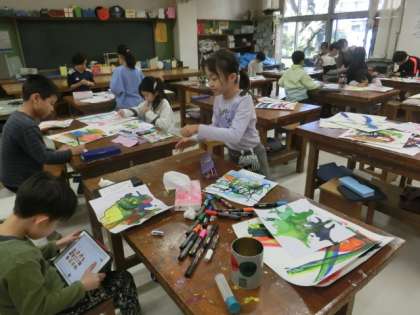 子どもたち一人ひとり、色づかいや線のひき方に個性があります。見ていて「すてき!」と、思わず声をあげてしまいました。
