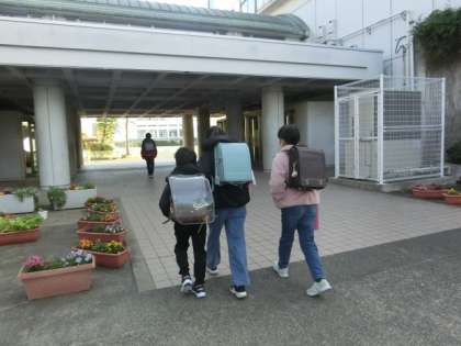 5年生が2年生の肩に手をまわしながら、校門に入ってきました。本当の兄弟のような雰囲気です。見ていてあたたかい気持ちになります。