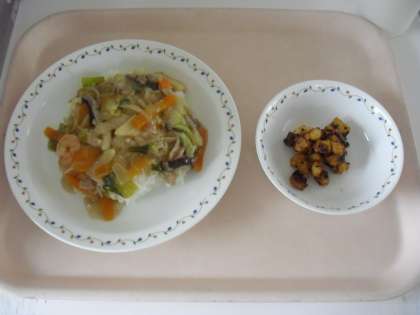 中華丼 牛乳 お豆かりんとう