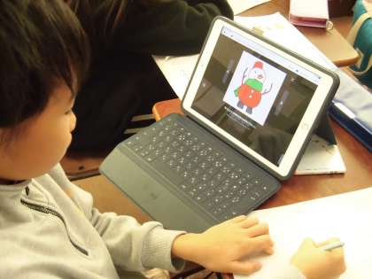 「冬のくらし」の視写と「冬といえば〇〇」を考えています。こたつやみかん、雪だるまや雪ウサギなどの言葉が上がっていました。衣食住の観点から、「何があるかなあ?」と一生懸命に探していました。