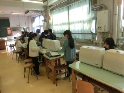 1組の授業は家庭科です。ミシンの学習が終わり、調理実習の計画を立てていました。お味噌汁を作るようです。出汁は煮干しのようです。出汁が煮干しのお味噌汁とてもおいしいですよね。お休みした人の分も、ワークシートに記入をしている人がいて、担当の先生がとてもほめていました。