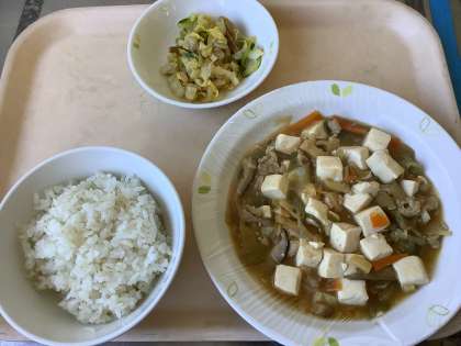 麦ご飯・四川豆腐・白菜の中華ハムサラダ