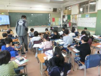 身の回りの物の長さを比べています。どのようにしたら、ものの長さを比べることができるのでしょう。子どもたちは、ノートにうつしたり、手の上でそろえたりして比べています。みんな分かりやすく比べる方法を考えています。