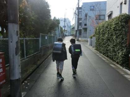 子どもたちの登校の時刻です。朝方までの雨はあがり、少しずつお日様が出てきました。あたたかい朝です。