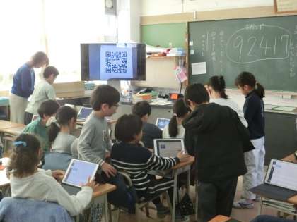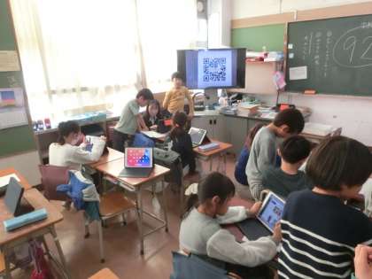 2組の教室では、ICT支援員の方にいらしていただき、教育委員会からのアンケートに答えていました。タブレットを使うので、ログインなどの関係で困ってしまうことがあります。そういう時は、ICT支援員の方に教えてもらっています。
