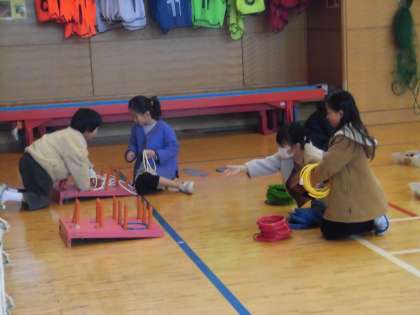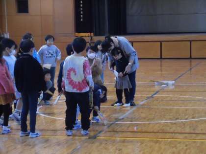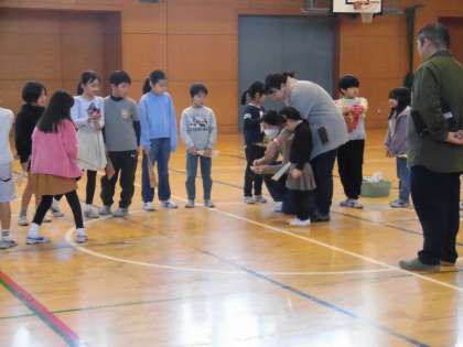 1、2時間目は、副籍交流のお友達が学習に参加しました。1時間目は音楽、2時間目は体育館で昔遊びを一緒にして過ごしました。
