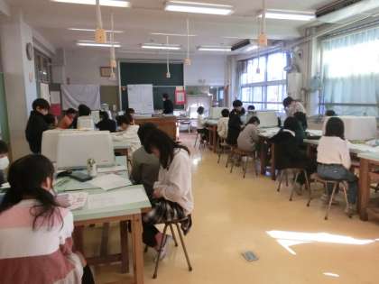 1組の授業は社会です。情報に関しての学習です。ニュースはどのようにしてみんなに伝えられているのでしょう。情報伝達の際に大切なことは何なのでしょう。とても身近なことですが、深く考えたことはあまりないですね。