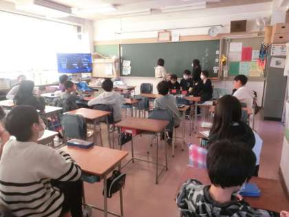 2組ではお楽しみ会の話し合いをしていました。どのような遊びをするか話し合っていました。担任先生がいないと思ったら、子どもたちの席に座っていて、全然気づきませんでした。