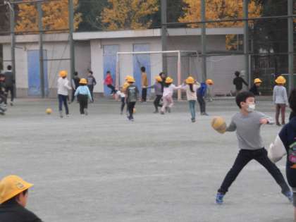 今日は曇天で雨が降りそうなお天気ですが、ぎりぎり外で遊ぶことができます。芝生は、本日までが養生期間。明日からは、芝生で過ごすこともできます。