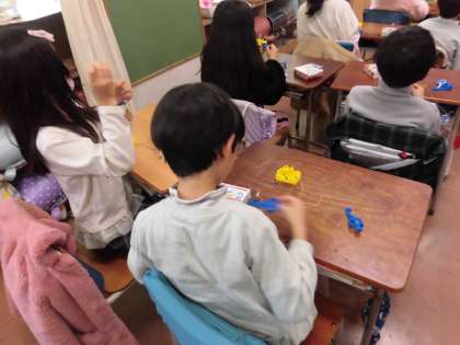 理科の実験のために、明かりをつける実験キットを組み立てています。自分用の実験キットがあるため、これからの実験が楽しみになります。