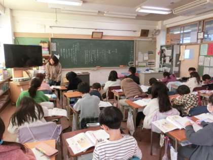 1組の授業は道徳です。授業の終末に近い時間に教室に入ったので、道徳ノートへのまとめの記入をしていました。子どもたちは、静かに今日の学習で分かったことを記入していました。
