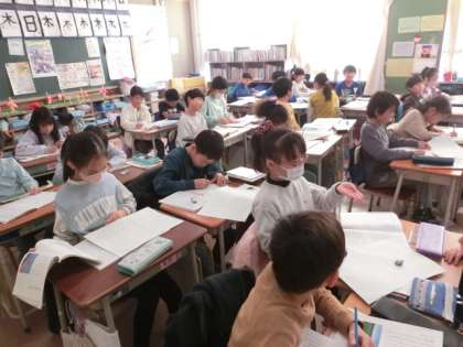 2組の授業は国語です。説明文の学習です。