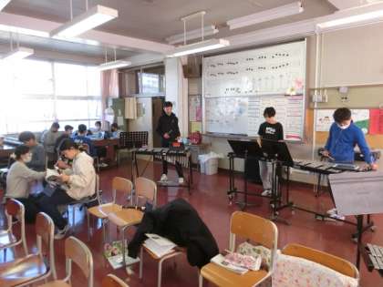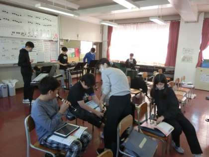 曲は「木星」です。それぞれのパートに分かれ練習をしています。一人ひとり自分のパート練習に一生懸命に取り組んでいます。