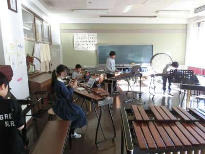 1組の授業は音楽です。合奏の練習をしています。