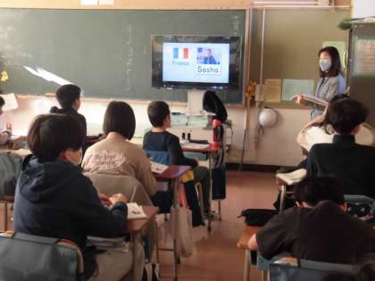 外国語の授業は、「世界の小学生が学校行事の思い出について話す」内容を聞き取っています。さて、日本の(池尻小)の6年生の学校行事の思い出は、どんな出来事でしょうか。