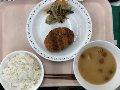 麦ご飯・なめこの味噌汁・和風コロッケ・野菜の胡麻和え