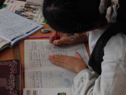 理科の実験結果の記録から、考察しています。自分の意見をしっかりと伝え、また、ノートづくりもしっかりと取り組めているようです。