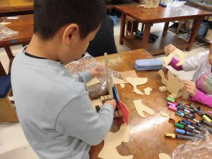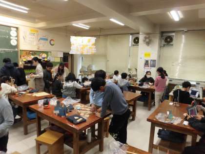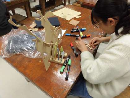 図工の木工作品が完成してきています。完成後は、仲間の作品を鑑賞します。