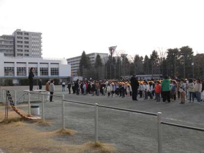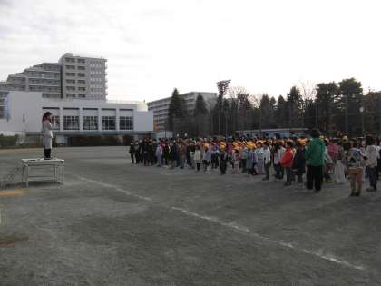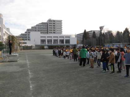 今朝は、気温がぐっと下がりました。寒くても、6年生が全校児童の前で「おはようございます」とあいさつの声を響かせてくれます。