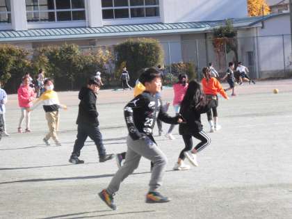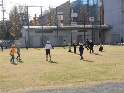 気温が低い中でも、子どもたちは元気に外遊びをしています。