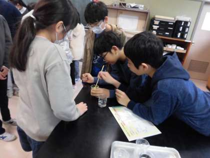科学クラブでは、片栗粉を使ったスライムづくりに挑戦です。