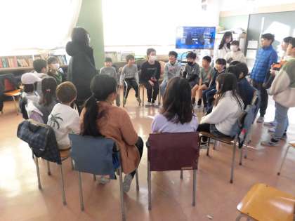 本日の朝の時間は、縦割り班活動です。今回から、5年生がリーダーとなり、遊びを決めたり班をまとめたりします。初めてですが、5年生同士で協力し取り仕切っています。