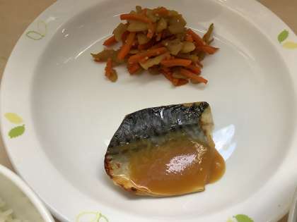 ご飯(有機米)・冬至のかぼちゃ汁・鯖のゆず味噌がけ・蓮根きんぴら