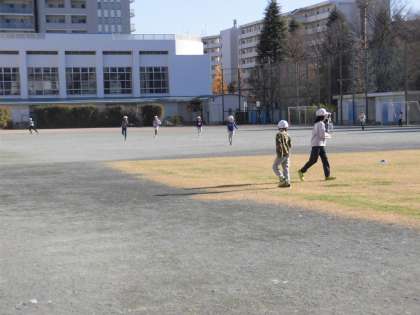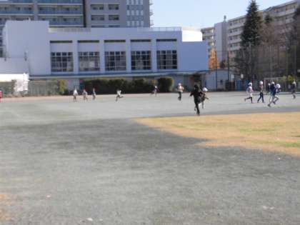 お楽しみ会で校庭を駆け回っています。校庭でやるところが、3年生らしい元気さです。今日も寒いものの、快晴です。