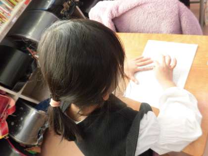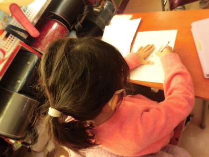 硬筆の学習です。お手本を見ながら、丁寧の鉛筆をすすめています。