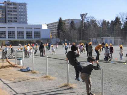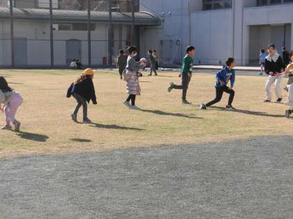 昼休みが本日はないので、中休みに思いっきり体を動かします。寒くても、みんなで体を動かしていると、あっという間に体が温まります。