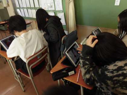 係活動の時間です。イラストの係の子どもたちが集中して作業をしていました。