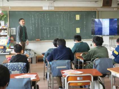 1組の授業は道徳です。「ブランコ乗りとピエロ」という題材です。
