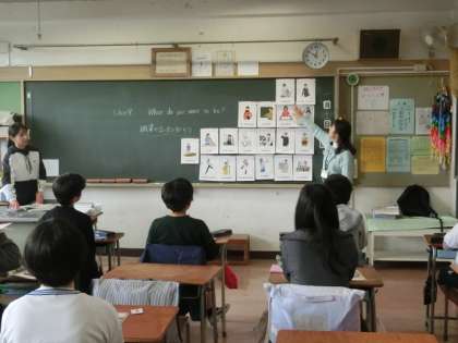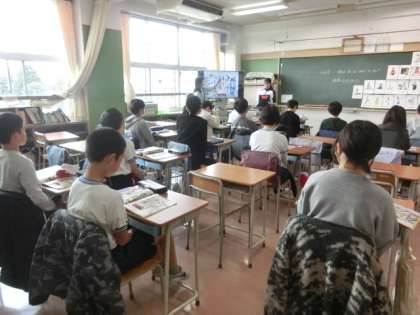 2組の授業は外国語です。英語活動支援員の先生がいらしています。