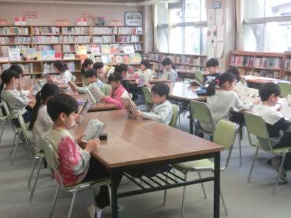 1組の授業は図書です。子どもたちは話をすることなく静かに本を読んでいます。本を読むことが好きな子どもたちです。