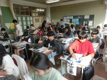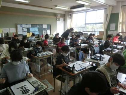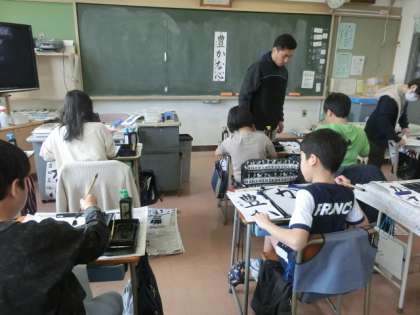 2組は教室で書き初めをしていました。子どもたちはとても集中しています。話をしている人は誰もいません。子どもたちは気持ちを落ち着けて、筆を動かしています。できあがりが楽しみです。