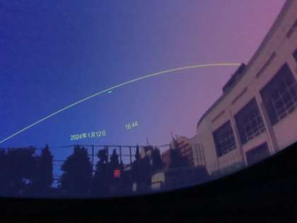 このプラネタリウムでは、池尻小学校の校庭から見た星の様子を見ることができます。校舎の様子も再現されています。