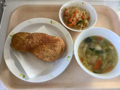 きなこ揚げパン・白菜と肉団子のスープ・糸寒天の和えもの