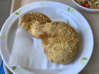 今日はきなこがよく絡むようにねじりパンにしました。きなこを口につけながら、美味しそうに食べたいました。