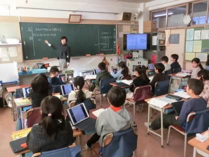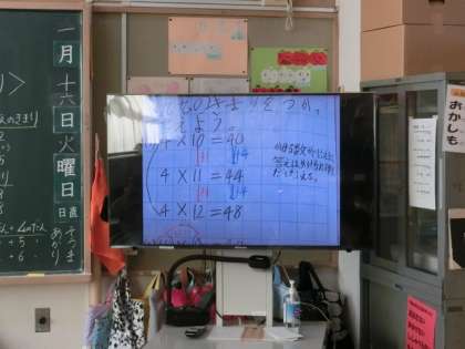 2年生ではかけ算九九のきまりの学習をしています。気づいたことを記入したノートをみんなで共有しています。自分でノートにまとめることのできる力、とても大切ですね。