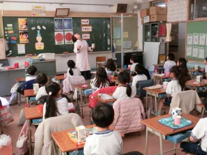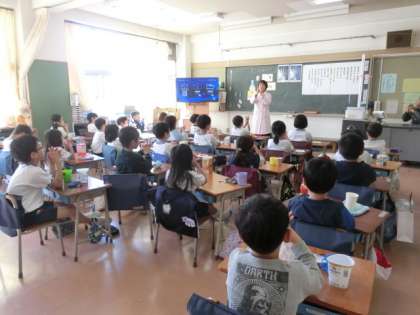 今日は1年生のすこやかタイムです。テーマはうがい・手洗いです。