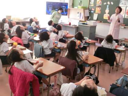 歌に合わせて手洗いをしたり、実際にうがいをしたりしました。これからの季節、風邪がはやることが多くあります。今日の勉強したうがい・手洗いの仕方を実践していってほしいです。