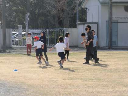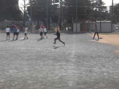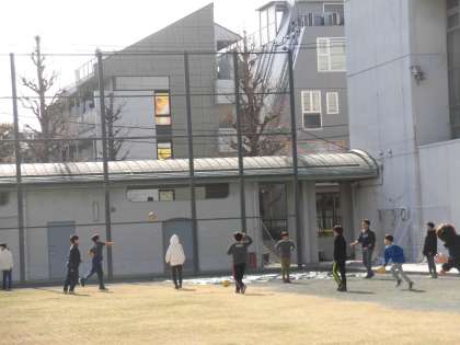 寒くても、子どもたちは元気に校庭で友達と遊んでいます。体を動かしているうちに、「あつい!」と言いながら上着を脱ぐ子もいます。