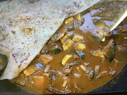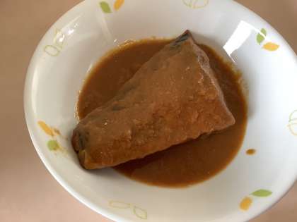 給食室の大きな釜で煮込んだ鯖は、味が染み込み、美味しく出来上がりました。